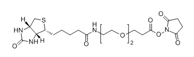 英文名称:Biotin-PEG2-SPA CAS No.: 596820-83-6 英文别名: Biotin-PEG2-NHS 产品纯度: ≥95% 分子式: C21H32N4O8S 分子量: 500.6