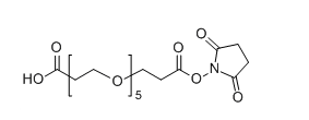 英文名称:COOH-PEG5-SPA CAS No.: 1343476-41-4 英文别名: COOH-PEG5-NHS 产品纯度: ≥95% 分子式: C18H29NO11 分子量: 435.4