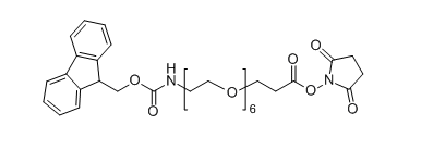 英文名称:Fmoc-NH-PEG6-NHS CAS No.: 1818294-31-3 产品纯度: ≥95% 分子式: C34H44N2O12 分子量: 672.7