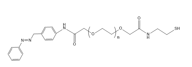 偶氮苯-PEG-SH;聚乙二醇首端连接偶氮苯,末端修饰炔基聚合物,提供甲苯磺酸酯,乙酰硫基,氨甲基/聚乙二醇修饰偶氮苯复合材料