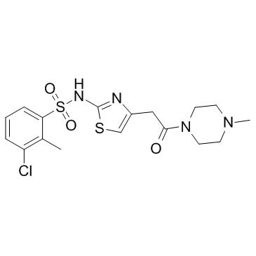 分子式:C₁₇H₂₁ClN₄O₃S₂,分子量:C₁₇H₂₁ClN₄O₃S₂,纯度: > 98%,溶解性: (R.T.: 25℃): DMSO,BVT 2733是11_beta_-HSD1脱氢酶**剂。
