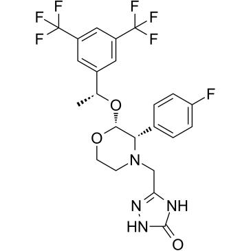 分子式:C23H21N4O3F7,分子量:534.42664,纯度: > 98%,溶解性: (R.T.: 25℃): DMSO,Aprepitant (MK-0869) 是选择性和高亲和力的神经激肽1受体拮抗剂,Kd 值为86 pM。