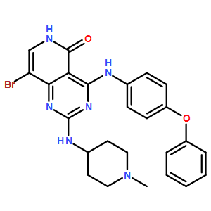分子式:C25H25N6O2Br,分子量:521.40,纯度: > 98%,溶解性: (R.T.: 25℃): DMSO,G-749 is a novel and potent FLT3 inhibitor with IC50 of 0.4 nM, 0.6 nM and 1 nM for FLT3 (WT), FLT3 (D835Y), and Mer, respectively, showing lower potency against other tyrosine kinases.