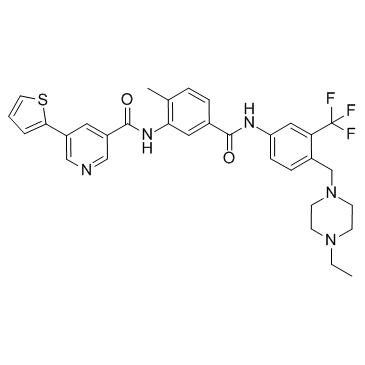 分子式:C₃₂H₃₂F₃N₅O₂S ,分子量:607.69 ,纯度: > 98% ,溶解性: (R.T.: 25℃): DMSO,ALW-II-41-27是 Eph 家族酪氨酸激酶**剂,**Eph2的 IC50为11 nM。