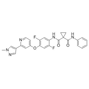 西安齐岳生物科技有限公司生产销售“c-Kit-IN-1,CAS:1225278-16-9”“分子式:C₂₆H₂₁F₂N₅O₃ ,分子量:489.47 ,纯度: > 98% ,溶解性: (R.T.: 25℃): DMSO,c-Kit-IN-1 是一种 c-Kit 和 c-Met 制剂,IC50 值 <200 nM。”,该产品仅用于科研,如果需要请联系我们