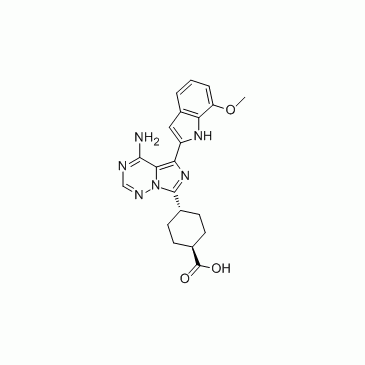 分子式:C₂₁H₂₂N₆O₃, 分子量:406.44 ,纯度: > 98% ,溶解性: (R.T.: 25℃): DMSO,OSI-027 是一种 ATP 竞争性的 mTOR 激酶活性**剂,IC50 为 4 nM。OSI-027 ** mTORC1 和 mTORC2,IC50 分别为 22 nM 和 65 nM。