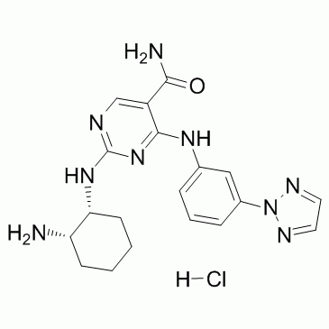 西安齐岳生物科技有限公司生产销售“PRT062607 Hydrochloride(P505-15 Hydrochloride;BIIB057 Hydrochloride),CAS: 1370261-97-4”“分子式:C₁₉H₂₄ClN₉O ,分子量:429.91 ,纯度: > 98% ,溶解性: (R.T.: 25℃): DMSO,PRT062607 Hydrochloride (P505-15 Hydrochloride) 是一种纯化的 Syk 制剂,IC50 为 1-2 nM。”,该产品仅用于科研,如果需要请联系我们