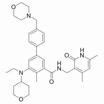 分子式:C34H44N4O4, 分子量:572.74, 纯度: > 98%, 溶解性: (R.T.: 25℃): DMSO, Tazemetostat (EPZ-6438) 是一种选择性的 EZH2制剂。