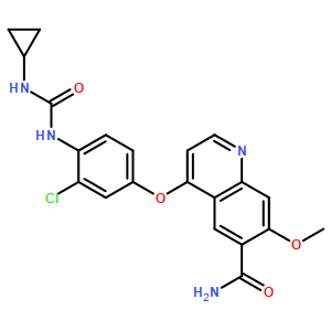 分子式:C21H19N4O4Cl, 分子量:426.85, Lenvatinib (E7080) is a multi-target inhibitor, mostly for VEGFR2(KDR)/VEGFR3(Flt-4) with IC50 of 4 nM/5.2 nM.