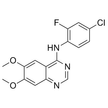 分子式:C22H18N3O2F.HCl, 分子量:411.86, 纯度: > 98%, 溶解性: (R.T.: 25℃): DMSO, ZM 323881 HCl是一种选择性的VEGFR2制剂,IC50为<2 nM,对VEGFR1, PDGFRβ, FGFR1, EGFR和ErbB2几乎没有活性。