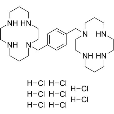 AMD3100 octahydrochloride;JM3100 octahydrochloride;SID791 octahydrochloride;分子式:C28H54N8.8[HCl].2[H2O], 分子量:830.50, 纯度: > 98%, 溶解性: (R.T.: 25℃): DMSO