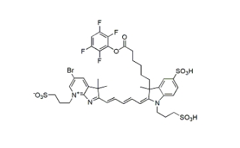 Name: BP Fluor 680 TFP Ester Formula: C41H44BrF4N3O11S3 MW: 1006.9 Ships Within: 24 Hours Storage Condition: -20°C Excitation Maximum: 678 Solubility: Water, DMSO, DMF