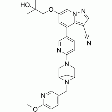 分子式:C₂₉H₃₁N₇O₃,分子量:525.60,纯度: > 98%,溶解性: (R.T.: 25℃): DMSO,Selpercatinib (LOXO-292) 是一种 RET 激酶, RET (WT),RET (V804M) 和 RET (G810R),IC50 分别为 14.0 nM,24.1 nM 和 530.7 nM