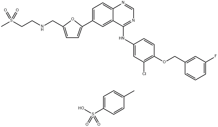 Lapatinib (GW-572016) Ditosylate is a potent EGFR and ErbB2 inhibitor with IC50 of 10.8 and 9.2 nM in cell-free assays, respectively.