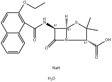 Nafcillin sodium reversibly inhibits β-lactamase with Kd of 33 mM.