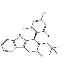 中文名称: 3,5-difluoro-4-((1R,3R)-2-(2-fluoro-2-methylpropyl)-3-methyl-2,3,4,9-tetrahydro-1H-pyrido[3,4-b]indol-1-yl)phenol