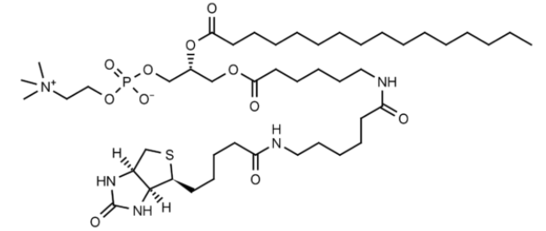 生物素-磷脂酰胆碱是一种功能化的磷脂酰胆碱,其sn1酰基链上结合了生物素。