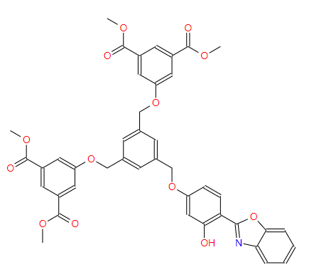 SMILES:COC(=O)C1=CC(C(=O)OC)=CC(OCC2=CC(COC3=CC(C(=O)OC)=CC(C(=O)OC)=C3)=CC(COC3=CC(O)=C(C4=NC5=CC=CC=C5O4)C=C3)=C2)=C1