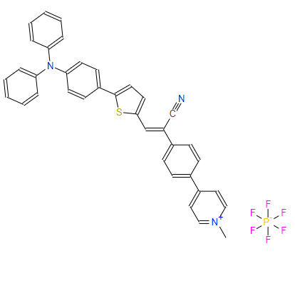 SMILES:C[N+]1=CC=C(C2=CC=C(/C(C#N)=C/C3=CC=C(C4=CC=C(N(C5=CC=CC=C5)C5=CC=CC=C5)C=C4)S3)C=C2)C=C1.F[P-](F)(F)(F)(F)F