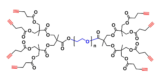 bis-MPA Dendronised PEG 20k, Acetylene Functional, G2 聚乙二醇20k核的二羟甲基丙酸乙炔修饰的二代树状聚合物交联产品