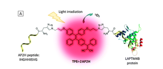 TPEr-2AP2H,a red emissive probe TPEr-2AP2H was developed with a photosensitive red TPE derivative and two peptides that could specifically target LAPTM4B protein, a biomarker overexpressed in the majority of tumor cells