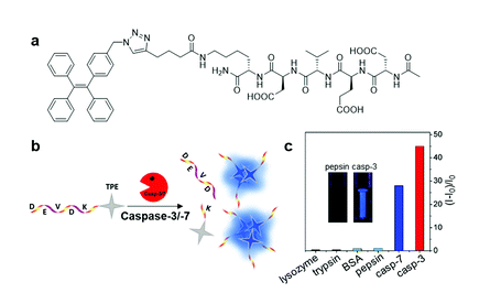 Ac-DEVDK-TPE,the AIEgen–peptide bioconjugate Ac-DEVDK-TPE was reported by Liu and Tang et al. to determine caspase-3/7 activity in real-time based on the site-specific peptide cleavage mechanism