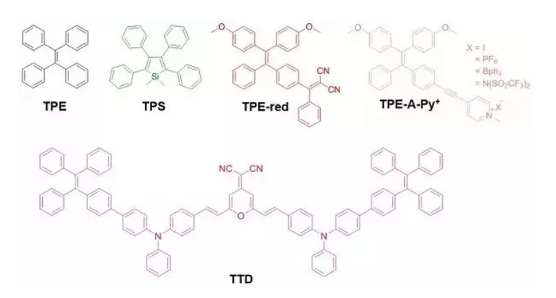 **的AIEgen结构和TPE衍生的AIE光敏剂, 聚集诱导发光材料,提供定制合成服务