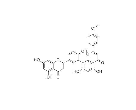 西安齐岳生物科技有限公司生产销售“2,3-Dihydropodocarpusflavone A|2,3-二氢罗汉松双黄酮A|cas: 852875-96-8”“分子式: C31H22O10 性状: Yellow powder 纯度: 97.0%”,该产品仅用于科研,如果需要请联系我们