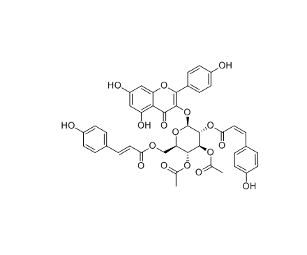 西安齐岳生物科技有限公司生产销售“3",4"-Di-O-acetyl-2",6"-di-O-p-coumaroylastragalin|cas:349545-02-4”“分子式: C43H36O17 性状: Yellow powder”,该产品仅用于科研,如果需要请联系我们