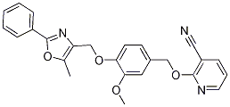 2-[3-甲氧基-4-[(5-甲基-2-苯基-4-恶唑基)甲氧基]苄氧基]烟腈;2-[3-methoxy-4-[(5-methyl-2-phenyl-4-oxazolyl)methoxy]benzyloxy]nicotinonitrile;分子式: C25H21N3O4;分子量: 427