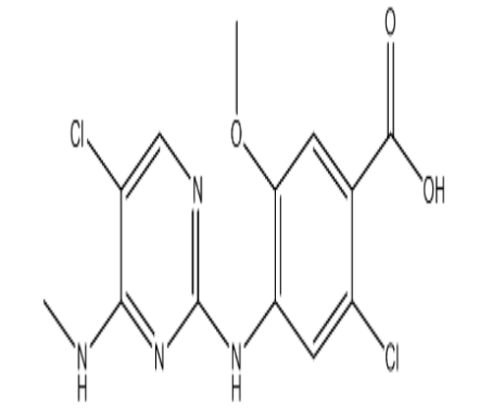 西安齐岳生物科技有限公司生产销售“2-Chloro-4-((5-chloro-4-(methylamino)pyrimidin-2-yl)amino)-5-methoxybenzoic acid|cas1441722-24-2”“分子式: C13H12Cl2N4O3分子量: 343.17”,该产品仅用于科研,如果需要请联系我们