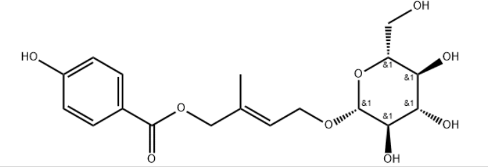 β-D-Glucopyranoside, (2E)-4-[(4-hydroxybenzoyl)oxy]-3-methyl-2-buten-1-yl,分子式:C18H24O9分子量:384.38