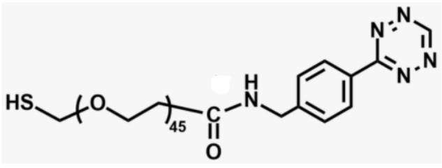Tetrazine-PEG-SH 中文名称:巯基聚乙二醇四嗪 英文名称:SH-PEG-Tetrazine 简称:SH-PEG-TZ