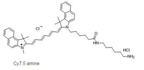 Cy7.5 (Cyanine 7.5) 是一种发近红外(NIR)荧光的花青素荧光染料。