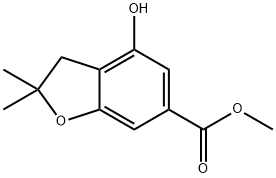 英文同义词:6-BENZOFURANCARBOXYLICACID,2,3-DIHYDRO-4-HYDROXY-2,2-DIMETHYL-,METHYLESTER;methyl4-hydroxy-2,2-dimethyl-3H-1-benzofuran-6-carboxylate;Methyl4-hydroxy-2,2-diMethyl-2,3-dihydro-1-benzofuran-6-carboxylate;