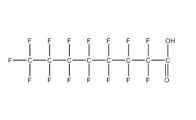 全氟辛酸,分子式为C8HO2F15,分子量414.07,白色结晶。微溶于水,熔点52-56℃,沸点189℃ 。通过电氟化法制得。 主要用作聚合时的分散剂,也用作制备憎水、憎油剂的原料和选矿剂。本品为强酸,能腐蚀皮肤。