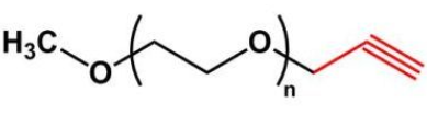 炔烃官能化的甲氧基聚乙二醇(Alk-PEG)是一种单官能PEG衍生物,可通过Click Chemistry用于修饰蛋白质,肽和其他材料。 炔基可在铜催化的水溶液中与叠氮化物反应。