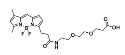 BODIPY FL-PEG2-COOH 分子量:451.28 溶解度:溶于DMSO,DMF,DCM,溶于水