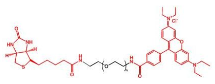 罗丹明PEG生物素 生物素PEG罗丹明RB-PEG-BIOTIN RB-PEG-BN Rhodamine-PEG-BIOTIN 分子量:600 溶解度:溶于DMSO,DMF,DCM,溶于水