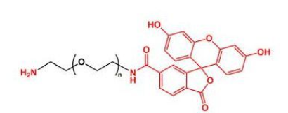 氨基PEG荧光素(NH2-PEG-FITC)是异双功能PEG衍生物之一,氨基容易与琥珀酰亚胺酯(NHS),活化的羧基(-COOH),醛基和许多其他官能团反应;FITC标记的聚乙二醇是一种荧光PEG衍生物,在495 nm处具有吸收,在515〜520 nm附近具有发射。 FITC呈现明亮的黄绿色荧光。 附加功能使这些荧光PEG衍生物易于与其他分子或材料表面偶联。