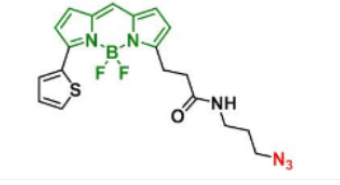 氟化硼二吡咯类荧光染料相对比于荧光素、罗丹明或者菁染料有着较高的量子产率、高摩尔消光系数、良好的光学稳定性和对PH不敏感的优点被广泛应用于生物标记、荧光探针及生物成像。
